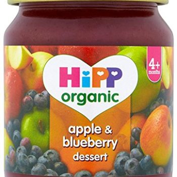 HiPP Organic Stage 1 From 4 Months Apple and Blueberry Dessert 6 x 125 g (Pack of 2, Total 12 Pots)
