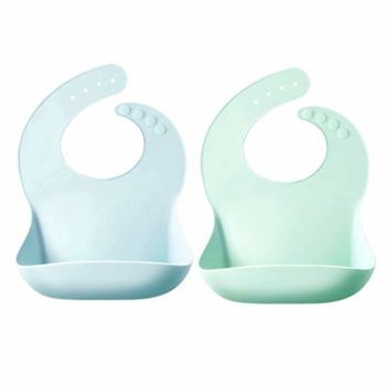 Exceart 2pcs Baby Feeding Bibs Silicone Burp Bandanas Snap Button Drool Bibs Dinner Food Catcher Smock for Toddler Infants Kids
