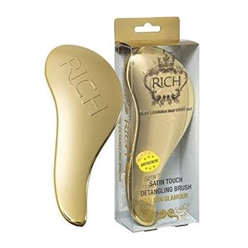 RICH Hair Care Golden Glamour Satin Touch Detangling Brush for All Hair Types – Keeps Hair Smooth – Anti-static, Reduces Frizz, For Dry & Wet Hair, Travel Size