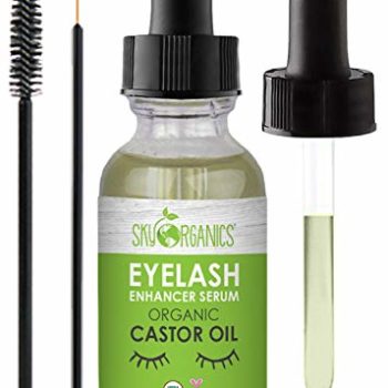 Organic Castor Oil Eyelash Serum by Sky Organics (1 oz) USDA Organic Cold-Pressed 100% Pure Castor Oil Natural Eyelash Serum Hexane-free Castor Oil with Mascara Brushes for Eyelashes and Eyebrows