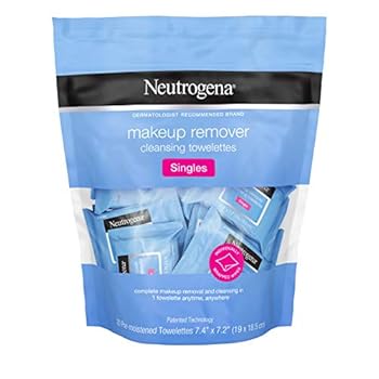 Neutrogena Makeup Remover Cleansing Towelette Singles, Daily Face Wipes to Remove Dirt, Oil, Makeup & Waterproof Mascara, Individually Wrapped, 20 ct (Pack of 2)