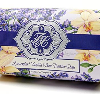 Soap, Lavender Vanilla Flowers Bar Soap, Luxury Large Natural Skin Care Soap, Beautifully Scented Shea Butter, Soap Bar, Made in England, Triple Milled. Environmentally Friendly (Green). 8 Ounce