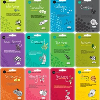 Celavi Collagen Facial Face Mask (12-Sheets) Classic Korean Skincare | Lighten, Moisturize, Tighten Skin | Diminish Dark Spots & Circles | Whiten, Brighten, Balance Pigmentation