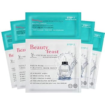 BEAUTYFEAST 2Step Pore Solution Facial Mask Sheet 1box (5pads+5sheets), Gentle peeling pad, Hydration mask