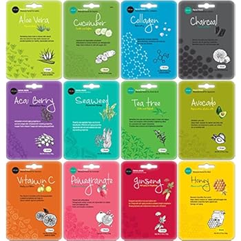 Celavi Collagen Facial Face Mask (12-Sheets) Classic Korean Skincare | Lighten, Moisturize, Tighten Skin | Diminish Dark Spots & Circles | Whiten, Brighten, Balance Pigmentation