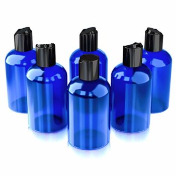 6-PACKS (4 oz) Blue PET Boston Round Plastic Bottle with Black Disc Cap, Great for Travel, Refill container for Liquid Soap, Lotions, Massage Oil, and Haircare Products.