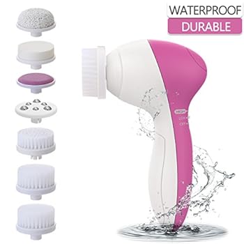 PIXNOR Facial Cleansing Brush [Newest 2020], Waterproof Face Spin Brush with 7 Brush Heads for Deep Cleansing, Gentle Exfoliating, Removing Blackhead, Massaging(Pink)