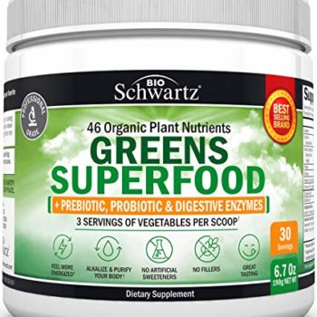 Super Greens Powder – 3 Servings of Veggies per Scoop | 45+ Organic Green Superfoods (Alfalfa, Chlorella, Spirulina & More) + Digestive Enzymes – Keto Friendly Vegan Supplement
