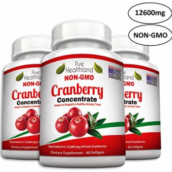 Non GMO Cranberry Concentrate Supplement Pills for Urinary Tract Infection UTI. Equals 12600mg Cranberries. Triple Strength Kidney Bladder Health for Men & Women. Easy to Swallow Softgels, 3 Bottles