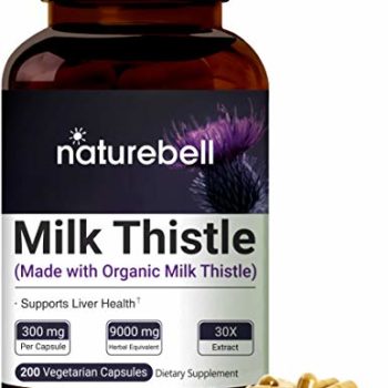 Milk Thistle Extract 30:1, Made with Organic Milk Thistle Powder and Artichoke Extract, 9000mg Herbal Equivalent, 200 Capsules, Active Natural Silymarin for Liver Health, Non-GMO and Made in USA