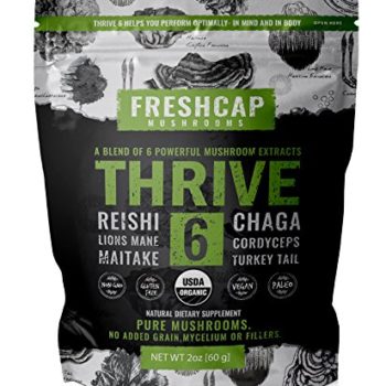 Thrive 6 Powerful Mushroom Extract Powder – USDA Organic – Lions Mane, Reishi, Cordyceps, Chaga, Turkey Tail, Maitake -60g- Supplement – Add to Coffee/Tea/Smoothies– Real Fruiting Body–No Fillers