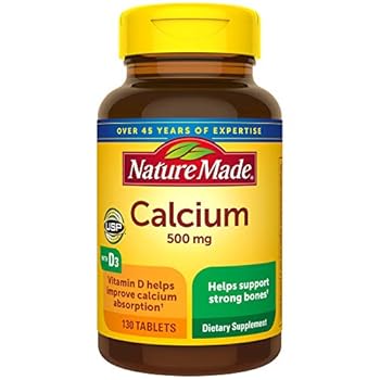 Nature Made Calcium 500 mg Tablets with Vitamin D, 130 Count for Bone Health (Packaging May Vary)