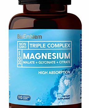 BioEmblem Triple Magnesium Complex | 300mg of Magnesium Glycinate, Malate, & Citrate for Muscle Relaxation, Sleep, Stress Relief, & Energy | High Absorption | Vegan, Non-GMO | 90 Capsules