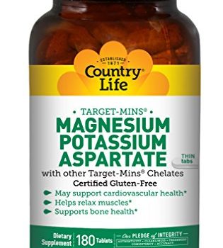 Country Life Target-Mins Magnesium Potassium Aspartate with Chelates – Support for Cardiovascular Health, Bone Health & Muscle Relaxation – Gluten-Free, Vegetarian, Kosher – 180 Tablets