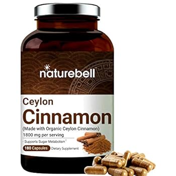 NatureBell Organic Ceylon Cinnamon Supplements, 1800mg Per Serving, 180 Capsules, Powerfully Support Sugar Metabolism, Heart Function and Joint Health for Men and Women, 1 Pack
