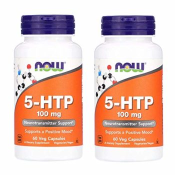 Now Foods 5-HTP Neurotransmitter Support for Positive Mood 100 Milligrams as a Dietary Supplement (60 Veg Capsules) Pack of 2