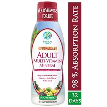 Tropical Oasis Adult Liquid Multivitamin -Liquid Multi-Vitamin and Mineral Supplement with 125 Total Nutrients Including; 85 Vitamins & Minerals, 23 Amino Acids, and 18 Herbs – 16 fl oz, 32 serv