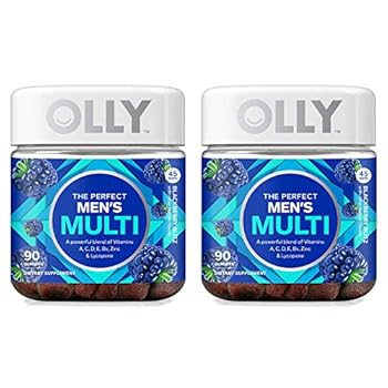 Olly LCVY Perfect Men’s Multivitamin Gummy Supplement, with Lycopene & Zinc; BlackBerry Blitz (45 Day Supply), 2 Pack of 90 Count