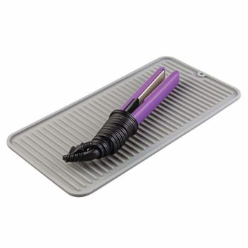 mDesign Silicone Heat-Resistant Hair Care Styling Tool Mat Tray – Rest Curling Irons, Flat Irons, Straighteners, Sticks, Wands on Bathroom Countertop – Non-Slip, Waterproof, Small – Gray