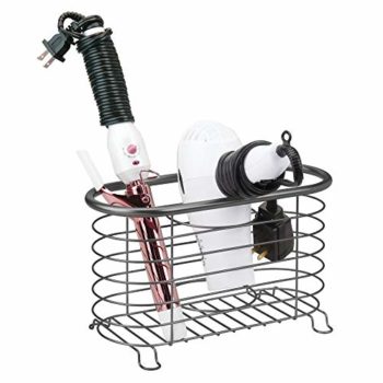 mDesign Metal Wire Hair Care & Styling Tool Organizer Holder Basket – Bathroom Vanity Countertop Storage Container for Hair Dryer, Flat Irons, Curling Wands, Hair Straighteners – Graphite Gray