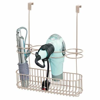 mDesign Metal Over Door Bathroom Hair Care & Styling Tool Organizer Storage Basket for Hair Dryer, Flat Irons, Curling Wands, Hair Straighteners – Hang Inside/Outside Cabinet Doors – Satin