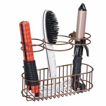 mDesign Wall Mount Bathroom Hair Care & Hot Styling Tool Organizer Storage Basket for Hair Dryer, Flat Irons, Curling Wands, Hair Straighteners, Brushes, Combs – 3 Sections – Venetian Bronze