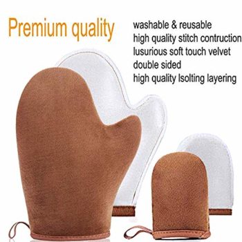Double sided & Durable use : Both side of the sunless tanning mitt allows you to use, you can use it with both hands and easily apply the lotion to your body. The inner seams of the self tanner glove are sewn with needles, no tearing problem! Therefore, not only is it convenient and durable, but you could get twice or even longer the using life than the single-sided self tanner mitt.