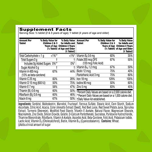 Contains Vitamin A, Vitamin B6, Vitamin B12, Vitamin C, Vitamin D, Vitamin E, Folic Acid, Iron, Niacin, Pantothenic Acid, Riboflavin (B2), Thiamin (B1), Iodine, Biotin