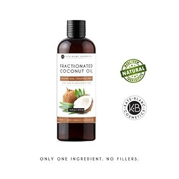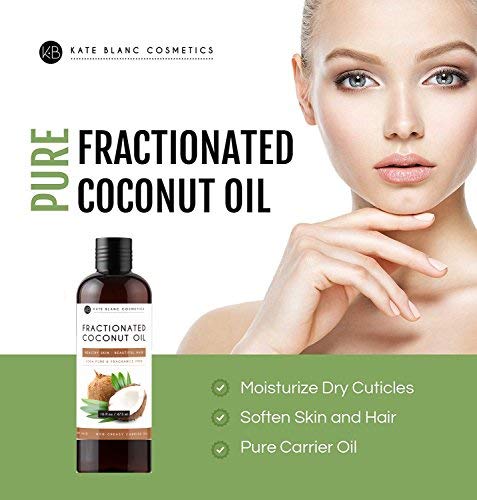 Fractionated Coconut Oil 16oz by Kate Blanc. For Aromatherapy Relaxing Massage, Carrier Oil for Diluting Essential Oils, Hair & Skin Care Benefits, Moisturizer & Softener. 1-Year Warranty.