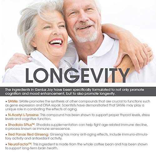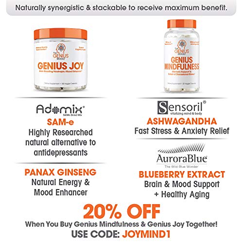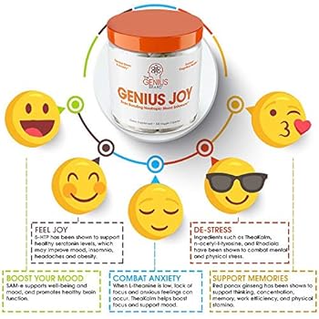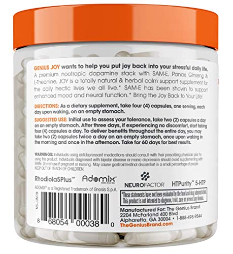 Genius Joy – Serotonin Mood Booster for Anxiety Relief, Wellness & Brain Support, Nootropic Dopamine Stack w/Sam-e…