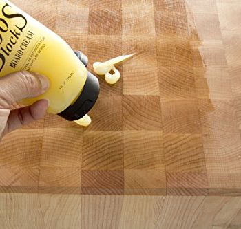 4. For additional protection, it is recommended to use Boos Block Board Cream (sold separately on Amazon) to seal the top of the wood surface. Allow the board cream to penetrate the wood surface overnight, then wipe off any excess cream.