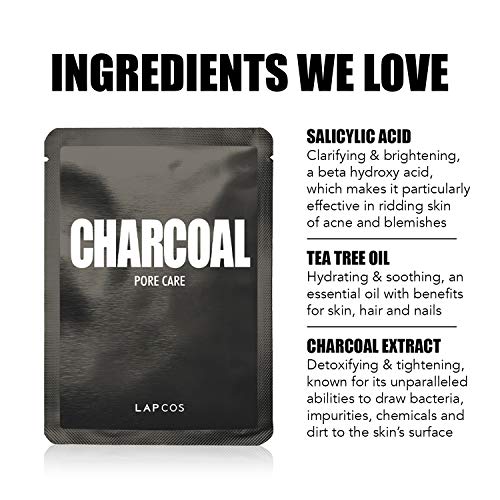 LAPCOS Charcoal Sheet Mask, Daily Face Mask with Salicylic Acid and Tea Tree Oil to Detoxify and Tighten Skin, Korean…