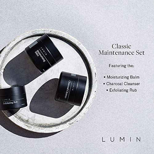 The Classic Maintenance Collection for Men (Oily Skin): Cleanse, Hydrate, and Renew Skin – Includes Moisturizing Balm, Exfoliating Rub, and Charcoal Cleanser – Achieve Your Best Look with Lumin