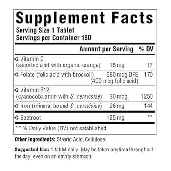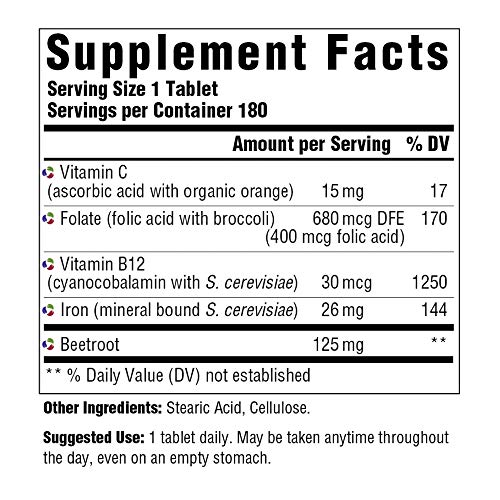 FARM FRESH WHOLE FOODS: Crafted the usage of our Slo-Food Process; Includes Beet Root and Vitamin C delivered at the side of organic oranges to reinforce iron absorption; Take 1 tablet any time of day
