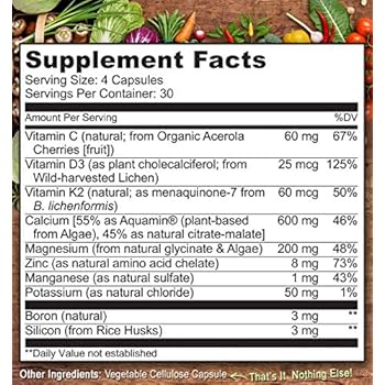 PLANT-BASED: Features Raw Calcium from Red Algae, Vitamin C from Organic Acerola Cherries, Plant-Sourced Vitamin D3 from Lichen.