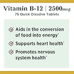 Nature’s bounty quick dissolve b-12 is one of the fastest, tastiest ways to get your daily requirement of this important vitamin. Just place one tablet under your tongue, and its highly concentrated formula will quickly dissolve. Vitamin b-12 is essential for the normal formation of blood cells, and contributes to the health of the nervous system. Like the rest of the b vitamins, b-12 plays a role in energy metabolism by helping convert food into energy in the body. An ideal choice for those who have difficulty swallowing tablets and capsules, nature’s bounty quick dissolve b-12 also contributes to heart and circulatory health.