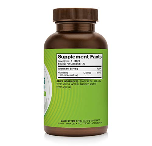 VITAMIN D3 FOR HEALTHY BONES: Vitamin D deficiency is a known cause of poor bone health. Nature’s Instincts VITAMIN D3 Softgels provide 5, 000 IU of this essential vitamin to support healthy bones.