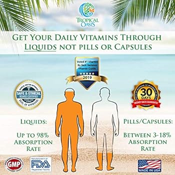 ✅ Liquid vitamins are absorbed up to 98% by the body compared to 3-18% for pills/capsules .