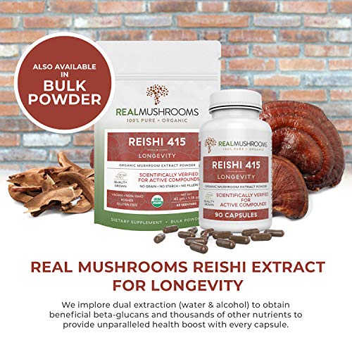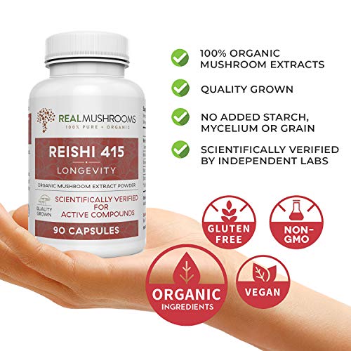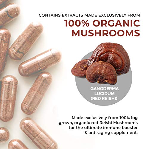 REAL MUSHROOMS REISHI EXTRACT FOR LONGEVITY: Made exclusively from 100% log grown, organic red Reishi Mushrooms. We implore dual extraction (water & alcohol) to obtain beneficial beta-glucans and thousands of other nutrients to provide unparalleled health boost with every capsule. Unlike the common mushroom supplement, we do not add mycelium, starch, grains or fillers into our products — only 100% real medicinal mushrooms in every bottle