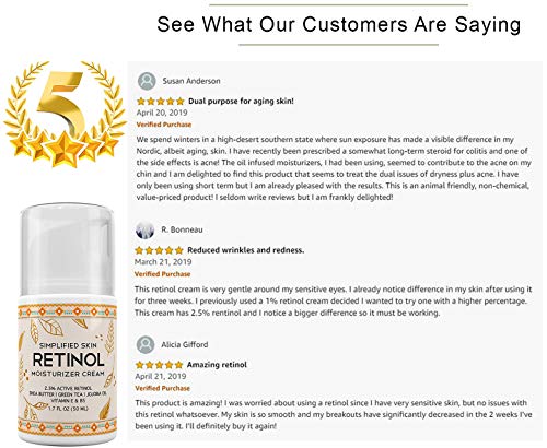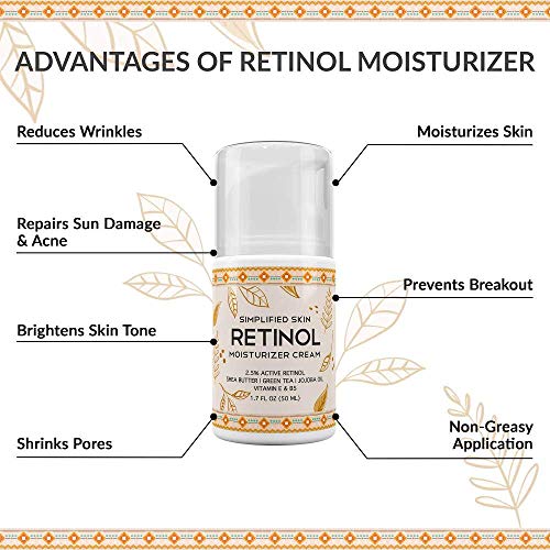 Retinol Moisturizer Cream 2.5% for Face & Eye Area with Vitamin E & Hyaluronic Acid for Anti Aging, Wrinkles & Acne – Best Night & Day Facial Cream by Simplified Skin 1.7 oz
