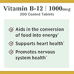 Contains (1) bottle of 200 coated tablets of Nature’s Bounty 1000mcg Vitamin B 12 vitamin supplement. Vitamin B 12 supports energy metabolism, aids in the conversion of food into energy and helps the normal formation of blood cells. (1) Suitable for vegetarians
