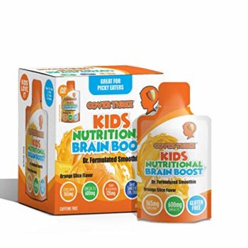 Kids Nutritional Brain Supplement – Boost Child Memory, Focus, Calmness – Support Brain, Immune, Vision, Heart Health – Omega Fish Oil DHA, Vitamin C, Turmeric, Resveratrol – Liquid Squeeze Pouch