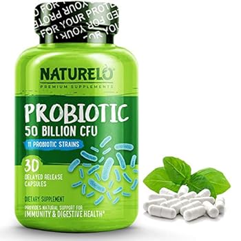 NATURELO Probiotic Supplement – 50 Billion CFU – 11 Strains – One Daily – Best for Digestive Health, Immune Support – Ultra Strength Probiotics – No Refrigeration Needed – 30 Vegan Capsules